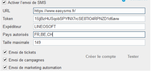 -Cocher la case « activer l’envoi de sms »