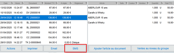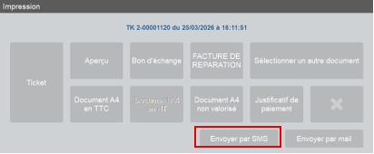 A la suite de cette activation, les documents de vente peuvent être transmis par sms via la caisse.